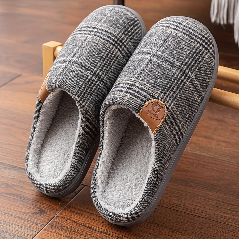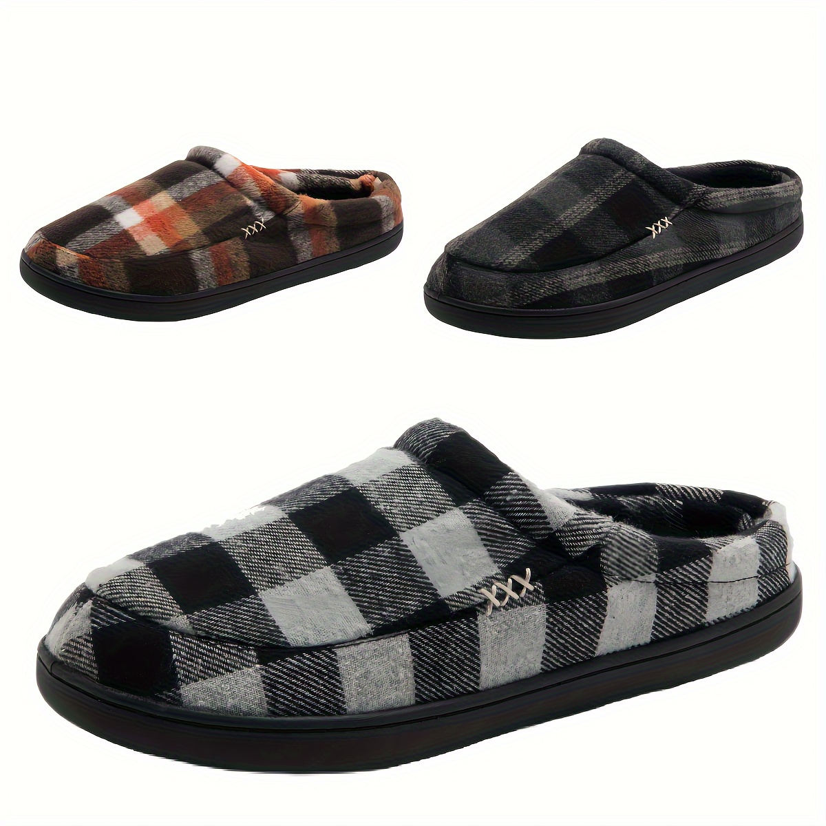 Plaid Home Slippers Soft Cozy House Slippers Anti-skid Slip-on Shoes Indoor For Men Fall Winter Shoes, With Plus Sizes Available